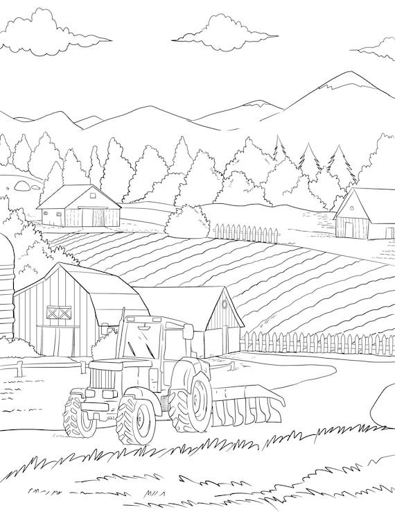Farm Tractor Printable Adult Coloring Page From Manila Shine Coloring Book Pages For Adults And Kids Coloring Sheets Coloring Designs Etsy